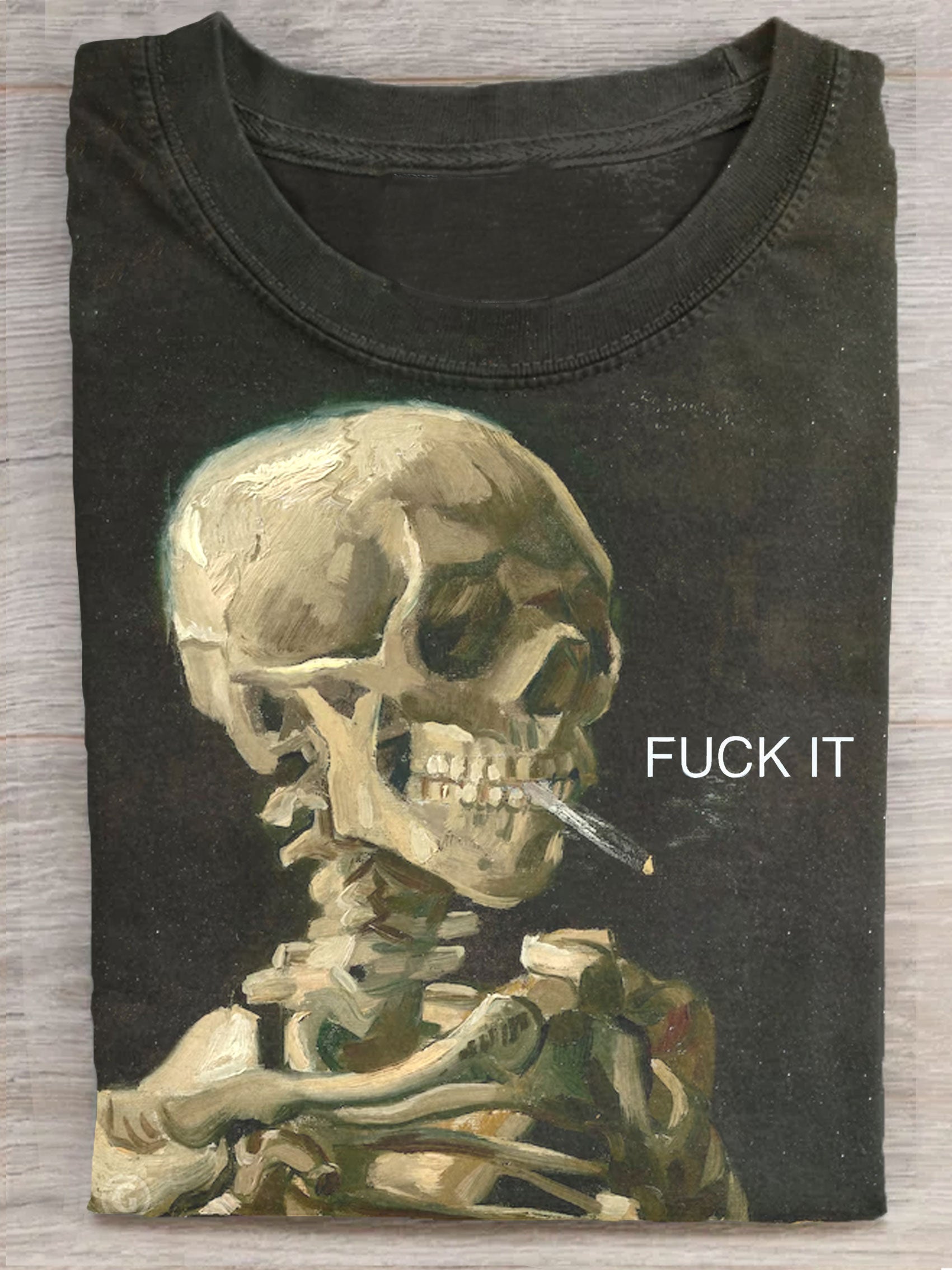 Vintage Skull Fuck It Art Print Casaul Short Sleeve T-shirt