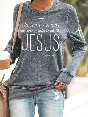 Women's All Death Can Do To The Believer Is Deliver Him To Jesus Print Round Neck Sweatshirt