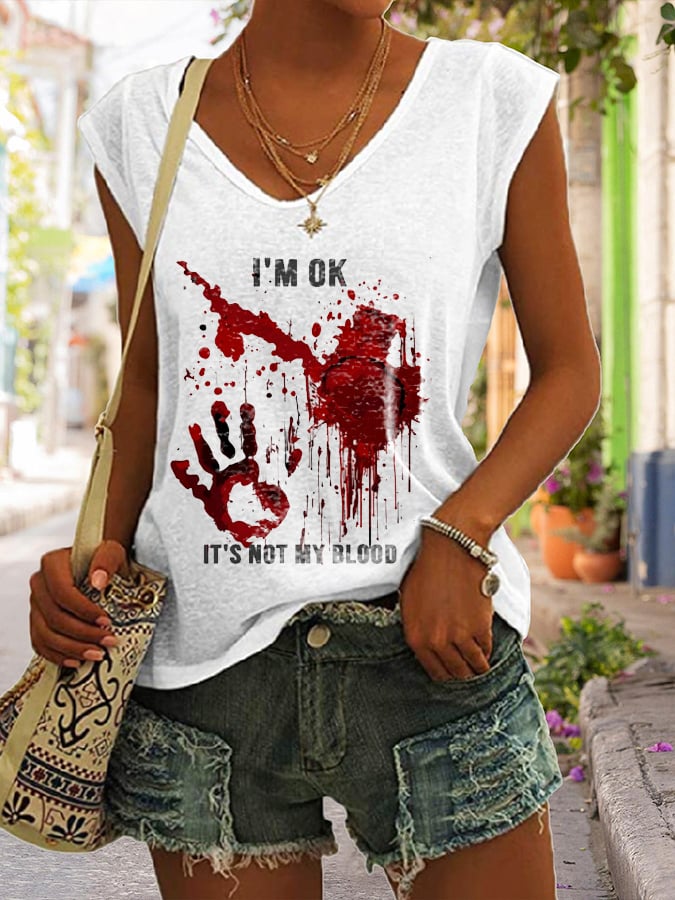 Women's All Saints' Day I'm OK It's Not My Blood Print Casual Vest