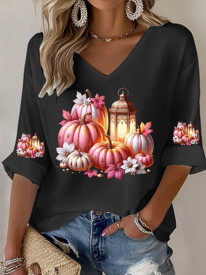 Women's Beat Breast Cancer Pink Pumpkin Print T-Shirt