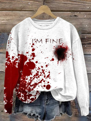 Women's Blood Stains I'M Fine Print Long Sleeve Sweatshirt
