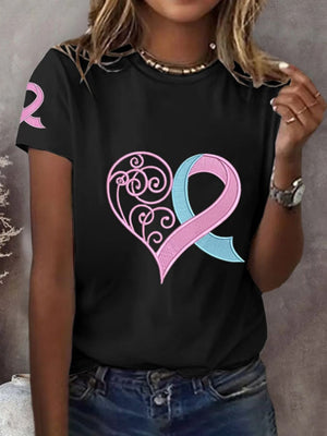 Women's Breast Cancer Awareness Love Pink Ribbon Print Casual T-Shirt