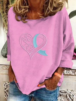 Women's Breast Cancer Awareness Printed Long Sleeve Sweatshirt