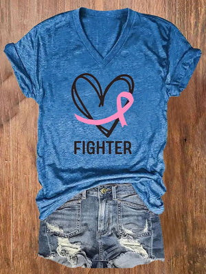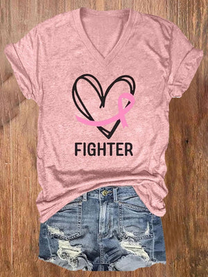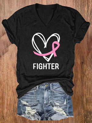 Women's Breast Cancer Awareness Printed V-Neck T-Shirt