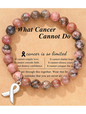 Women's Breast Cancer Awareness Ribbon Pendant Handmade Casual Bracelet