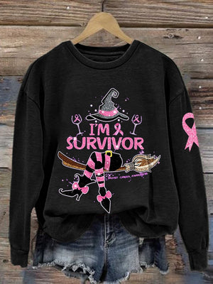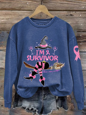 Women's Breast Cancer Awareness Witch Print Crew Neck Sweatshirt