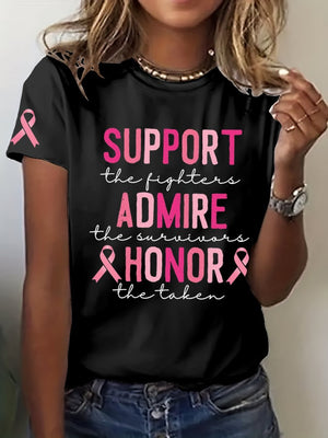Women's Breast Cancer Awarenesssupport The Fighters, Admire The Survivors, Honor The Taken, Pink Ribbon Crew Neck T-Shirt