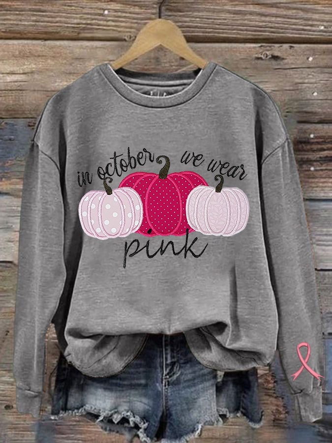 Women's Breast Cancer In October We Wear Pink Print Crew Neck Sweatshirt