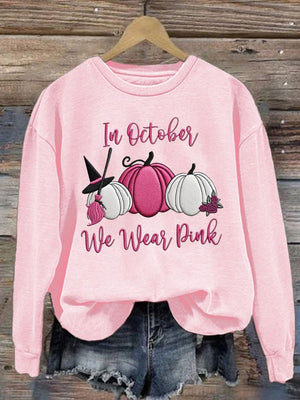 Women's Breast Cancer In October We Wear Pink Print Crew Neck Sweatshirt