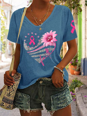 Women's Breast Cancer Print Casual T-Shirt