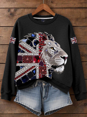 Women's British imitation diamond hot-drilling Print Sweatshirt