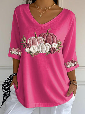 Women's Casual Autumn Pumpkin Bubble Wrinkle Top
