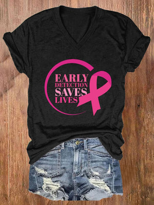 Women's Casual Early Detection Save Lives Print Short Sleeve T-Shirt