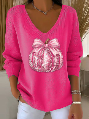 Women's casual pink sequined pumpkin striped long-sleeved top