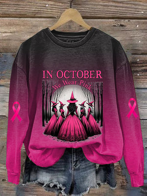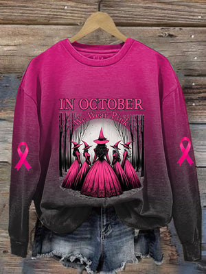 Women's Casual Vintage October We Wear Pink Witch Sweatshirt