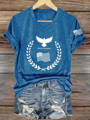 Women's Commemorative Print V Neck T-shirt