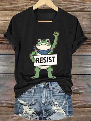 Women's FDT Portland Frog Protest Revolt Machine Print T-Shirt