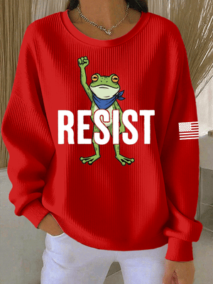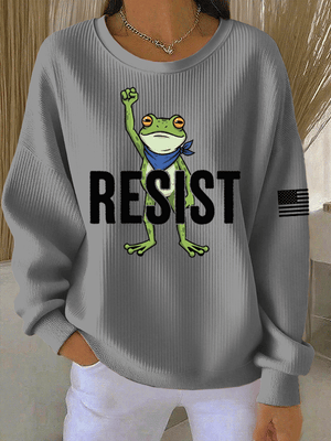 Women's FDT Print Knit Crew Neck Long Sleeve Top