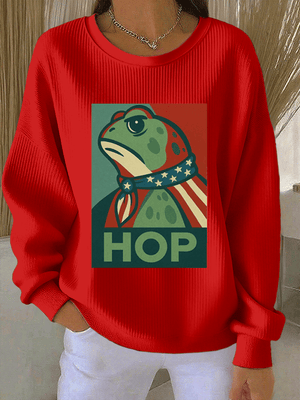 Women's FDT Print Knit Crew Neck Long Sleeve Top