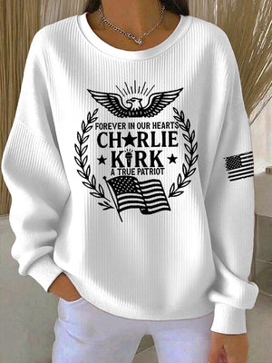 Women's Forever In Our Hearts A True Patriot Print Casual Sweatshirt