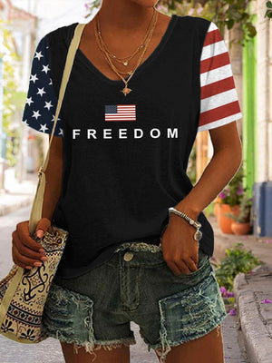 Women's Freedom American Flag Print Casual T-Shirt