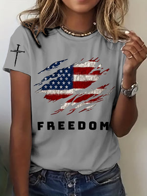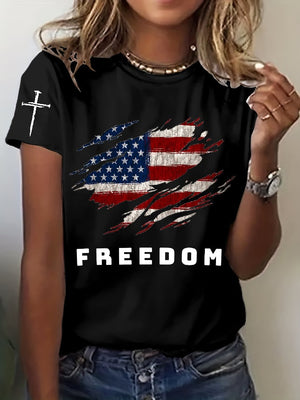 Women's Freedom American Flag Print Casual T-shirt