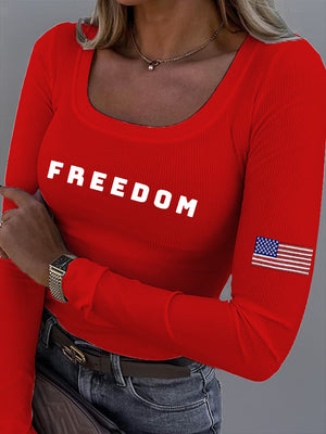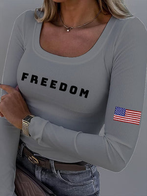 Women's Freedom American Flag Print Fabric Long Sleeve T-Shirt