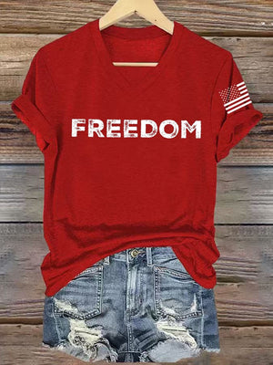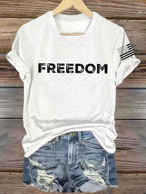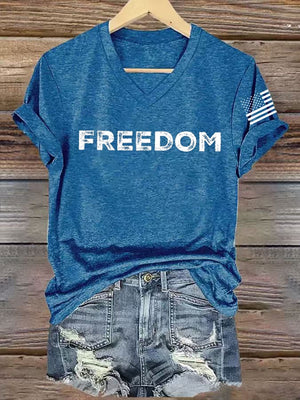 Women's freedom Print V-Neck T-Shirt