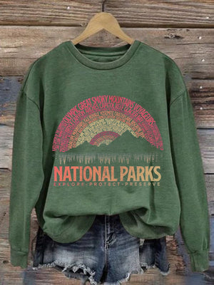 Women's Hotspots 63 National Parks Explore, Protect, And Preserve Printed Casual Sweatshirts