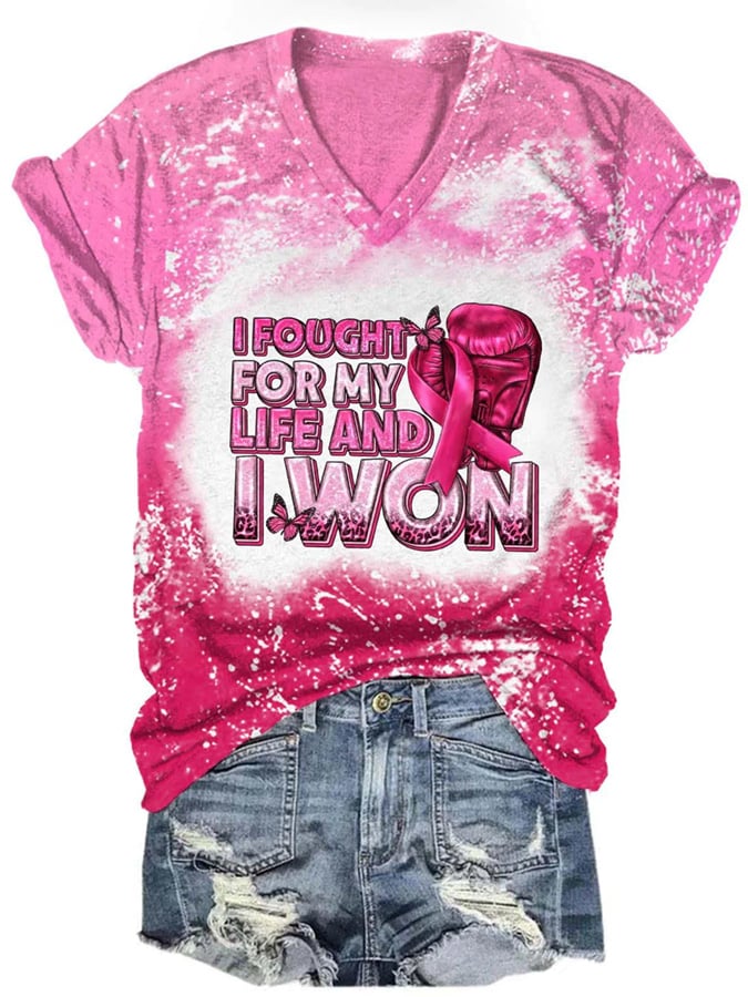 Women's I Fought For My Life And i Won Breast Cancer Print Casual Tee