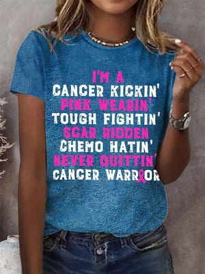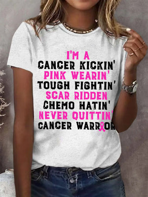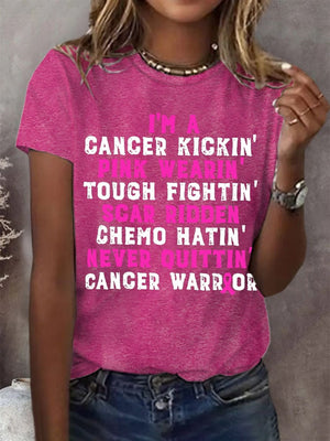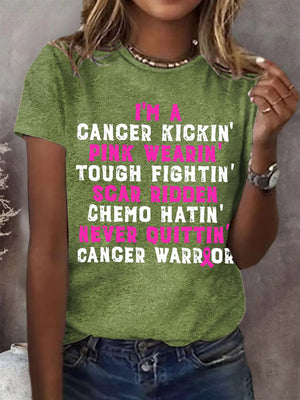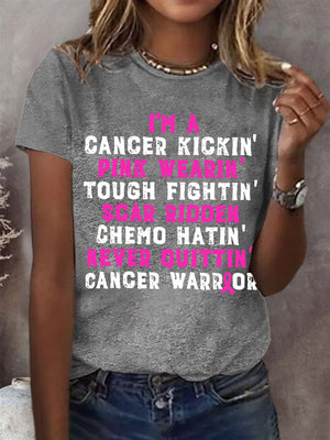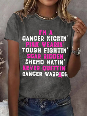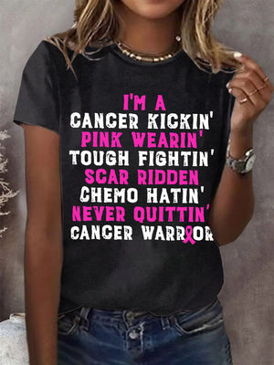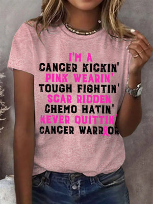 Women's I'm A Cancer Kickin' Pink Wearin' Tough Fightin' Scar Ridden Chemo Hatin' Never Ouittin' Cancer Warrior T-Shirt