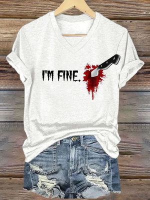 Women'S I'm Fine Print Casual T-Shirt
