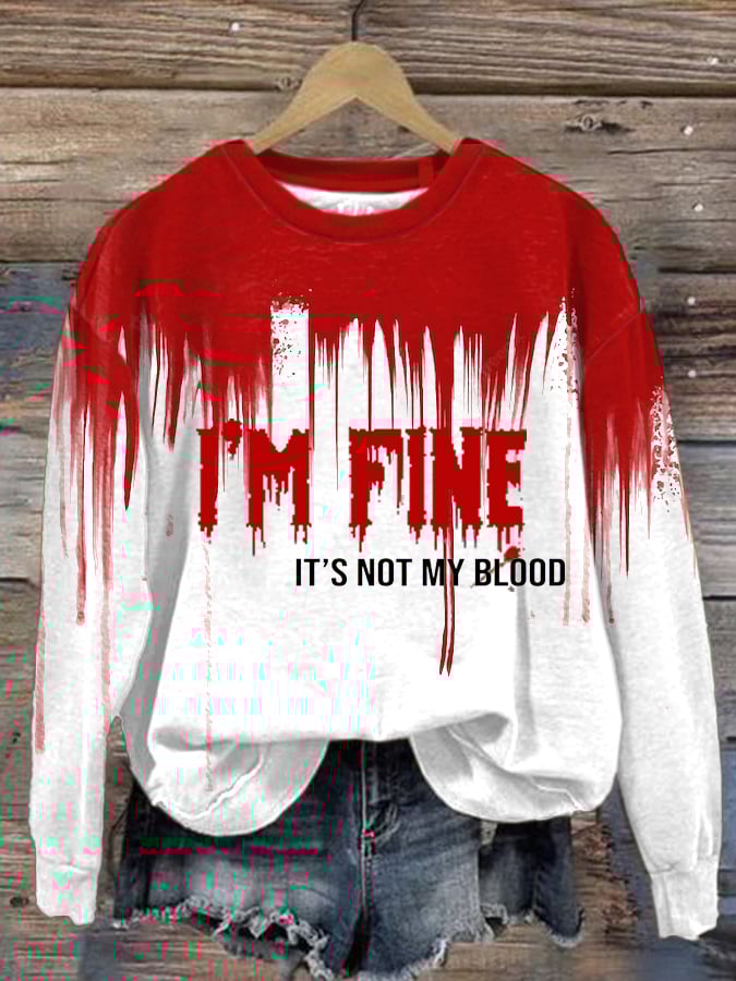 Women'S I'M Fine...It'S Not My Blood Print Long Sleeve Sweatshirt