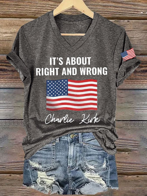 Women's It's About Right And Wrong Print V Neck T-shirt