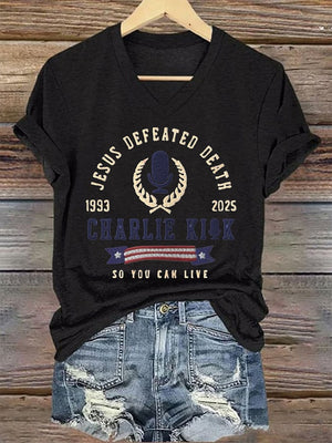 Women's Jesus Defeated Death So You Can Live R.I.P Charlie Kirk Print T-Shirt
