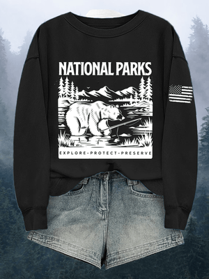Women's National Parks Explore Protect Preserve Print Crewneck Sweatshirt