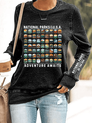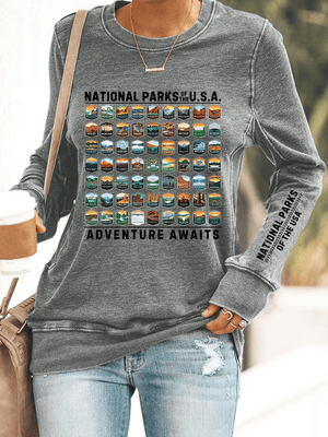 Women's National Parks Of The USA Print Crewneck Sweatshirt