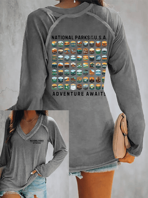 Women's National Parks Of The USA Print V-Neck T-Shirt