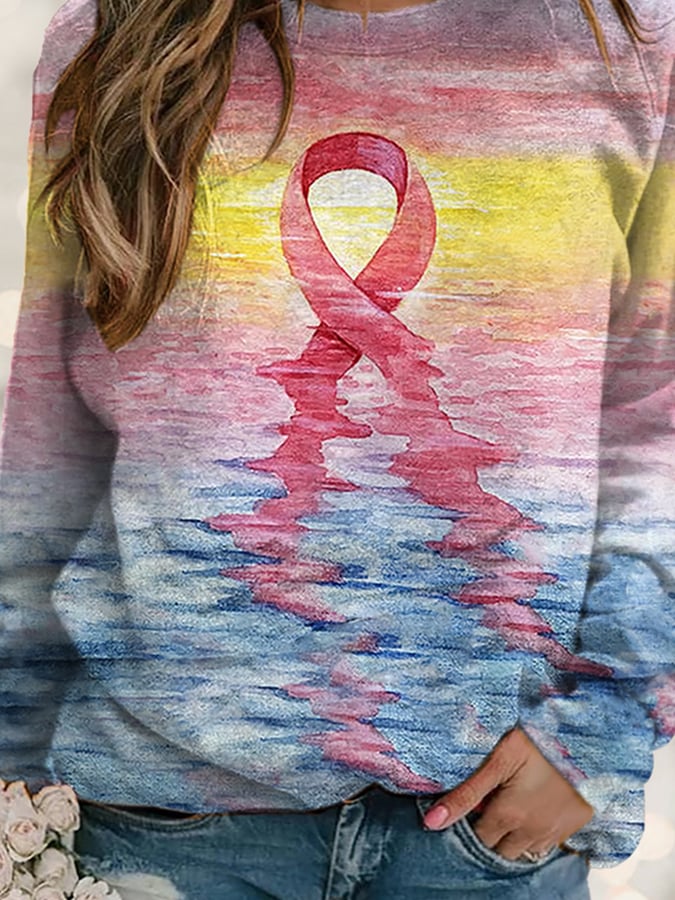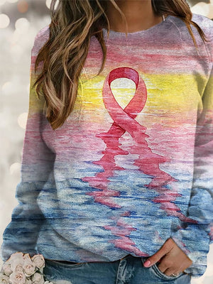 Women's Pink Ribbon Breast Cancer Art Print Long Sleeve Sweatshirt