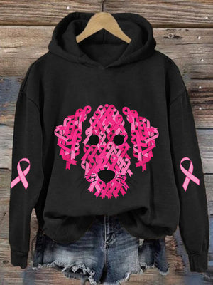 Women's Pink Ribbon Dog Breast Cancer Awareness Print Casual Hoodie