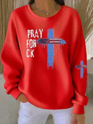 Women's Pray for Charlie Print Knit Crew Neck Long Sleeve Top