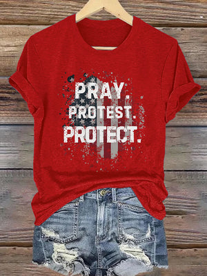 Women's Pray Protest Protect Print Shirt