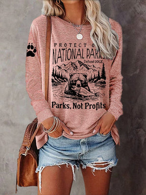 Women's Protect Our National Parks Print Casual T-Shirt