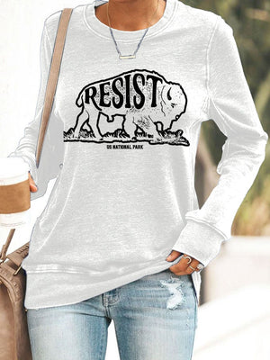Women's Protect Our National Parks Print Round Neck Sweatshirt
