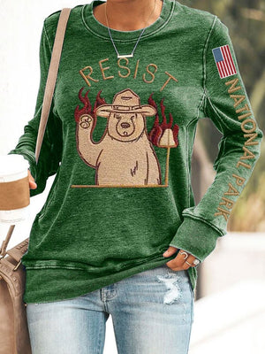 Women's Protect Our National Parks Print Round Neck Sweatshirt