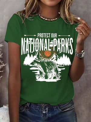 Women's Protect Our National Parks Print Round Neck T-Shirt