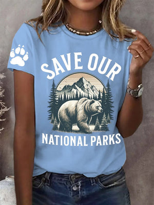 Women's Protect Our National Parks Print Round Neck T-Shirt