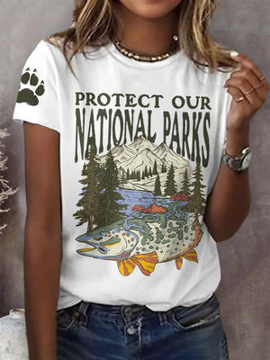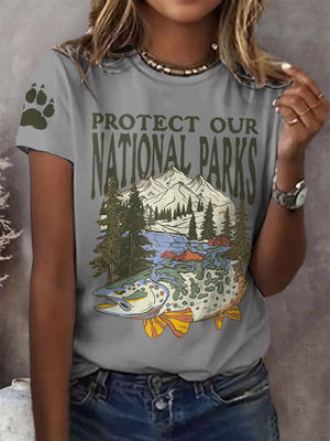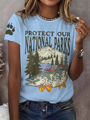 Women's Protect Our National Parks Print Round Neck T-Shirt