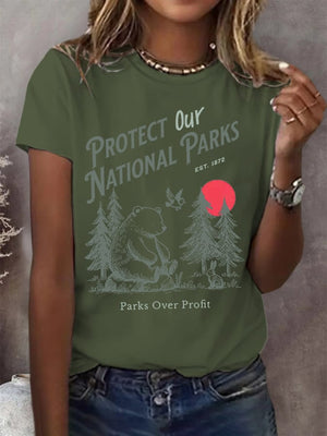 Women's Protect Our National Parks Print Round Neck T-Shirt
