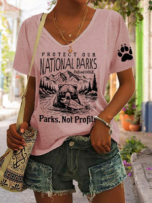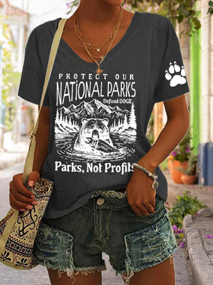 Women's Protect Our National Parks Print V Neck Casual T-Shirt